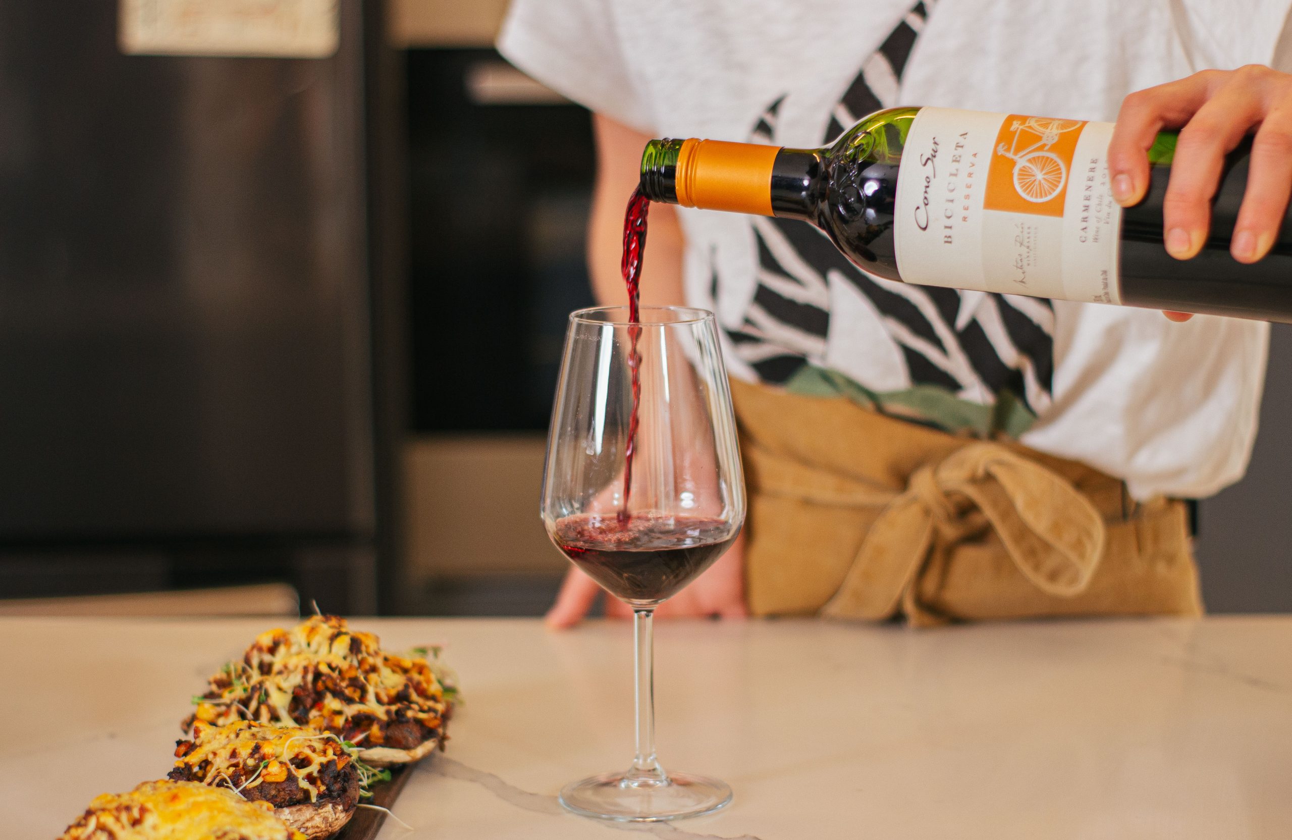 Powstały farsz rozłóż na kapeluszach grzybów, posyp serem i piecz przez 15 minut. Gotowe danie udekoruj kiełkami. Podawaj gorące, w towarzystwie lampki wina Cono Sur Bicicleta Carmenere.