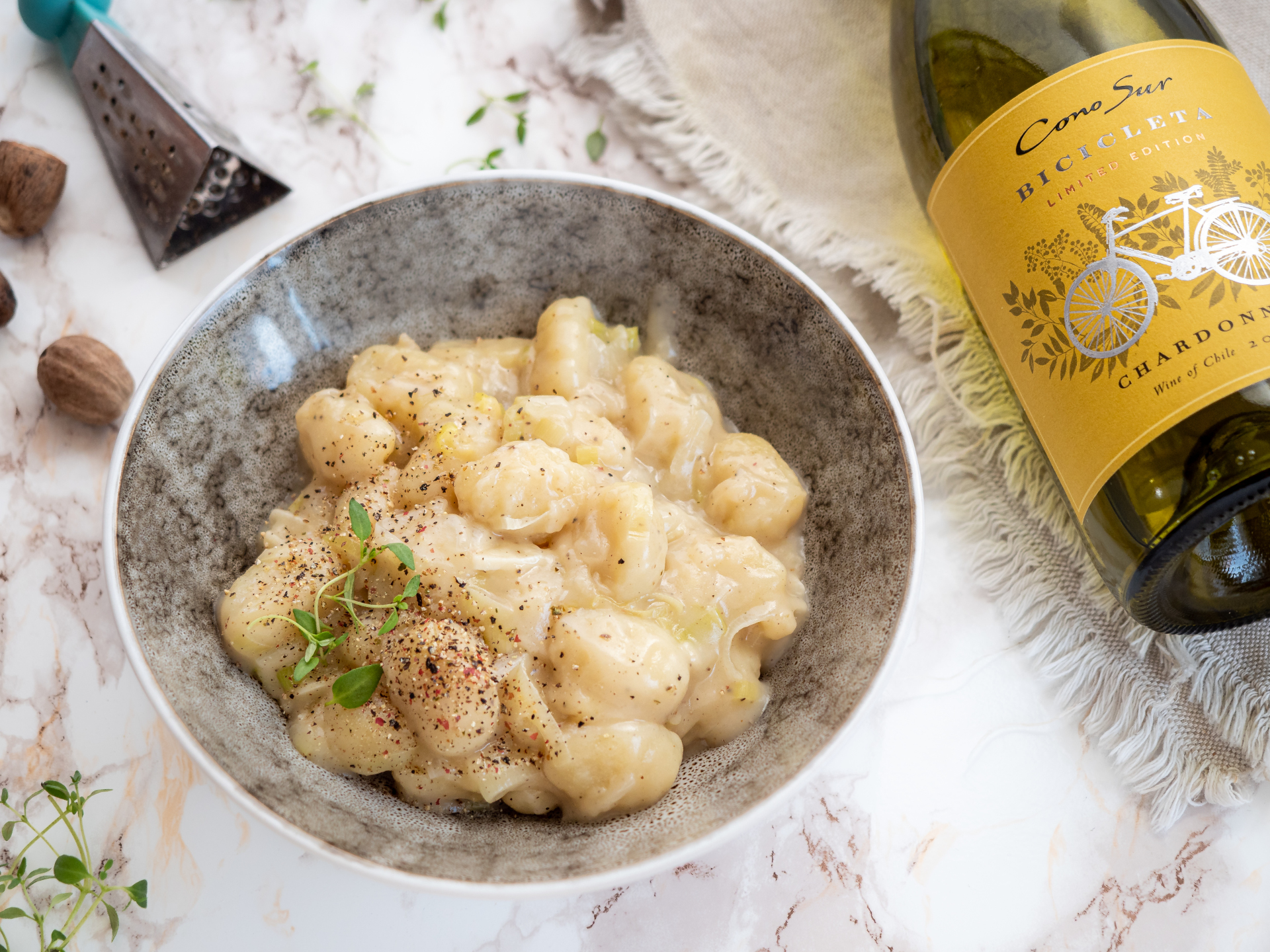Ugotuj gnocchi, a następnie dodaj je do sosu i dokładnie wymieszaj. Podawaj ze świeżo zmielonym pieprzem i listkami tymianku.
