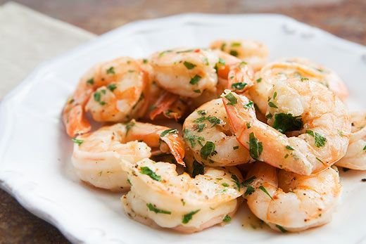 Na dużej patelni rozgrzej oliwę z oliwek na średnim ogniu. Dodaj czosnek i smaż przez około 1 minutę, aż zacznie pachnieć, ale nie zarumieni się. Wrzuć krewetki na patelnię, dopraw je solą i pieprzem. Smaż po około 1-2 minuty z każdej strony, aż zmienią kolor na różowy. Następnie zdejmij je z patelni i odłóż na bok. Na tej samej patelni wlej białe wino i gotuj przez 3-4 minuty, aż odparuje o połowę. Dodaj masło, sok z cytryny i dokładnie wymieszaj, aby sos stał się aksamitny. Włóż krewetki z powrotem na patelnię, wymieszaj je z sosem i podgrzewaj jeszcze przez 1-2 minuty. Na koniec posyp świeżą pietruszką.