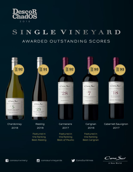 Najwyższe noty w przewodniku Descorchados otrzymały następujące wina Cono Sur: