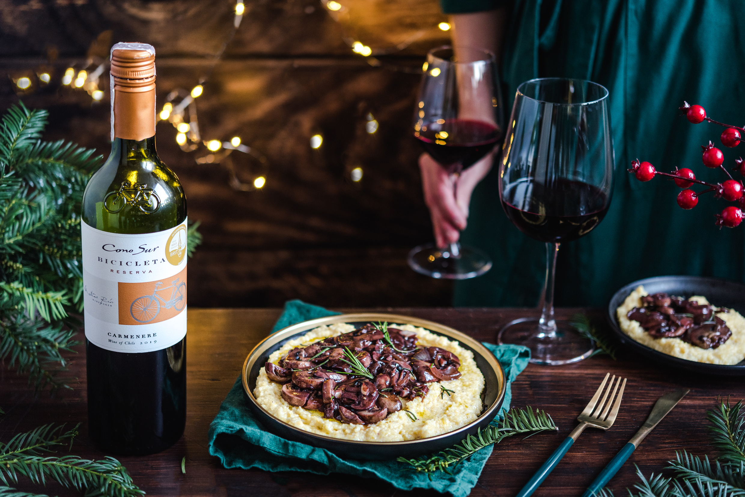 Polentę wykładamy na talerze, na wierzchu układamy pieczarki i posypujemy pozostałym rozmarynem do dekoracji.