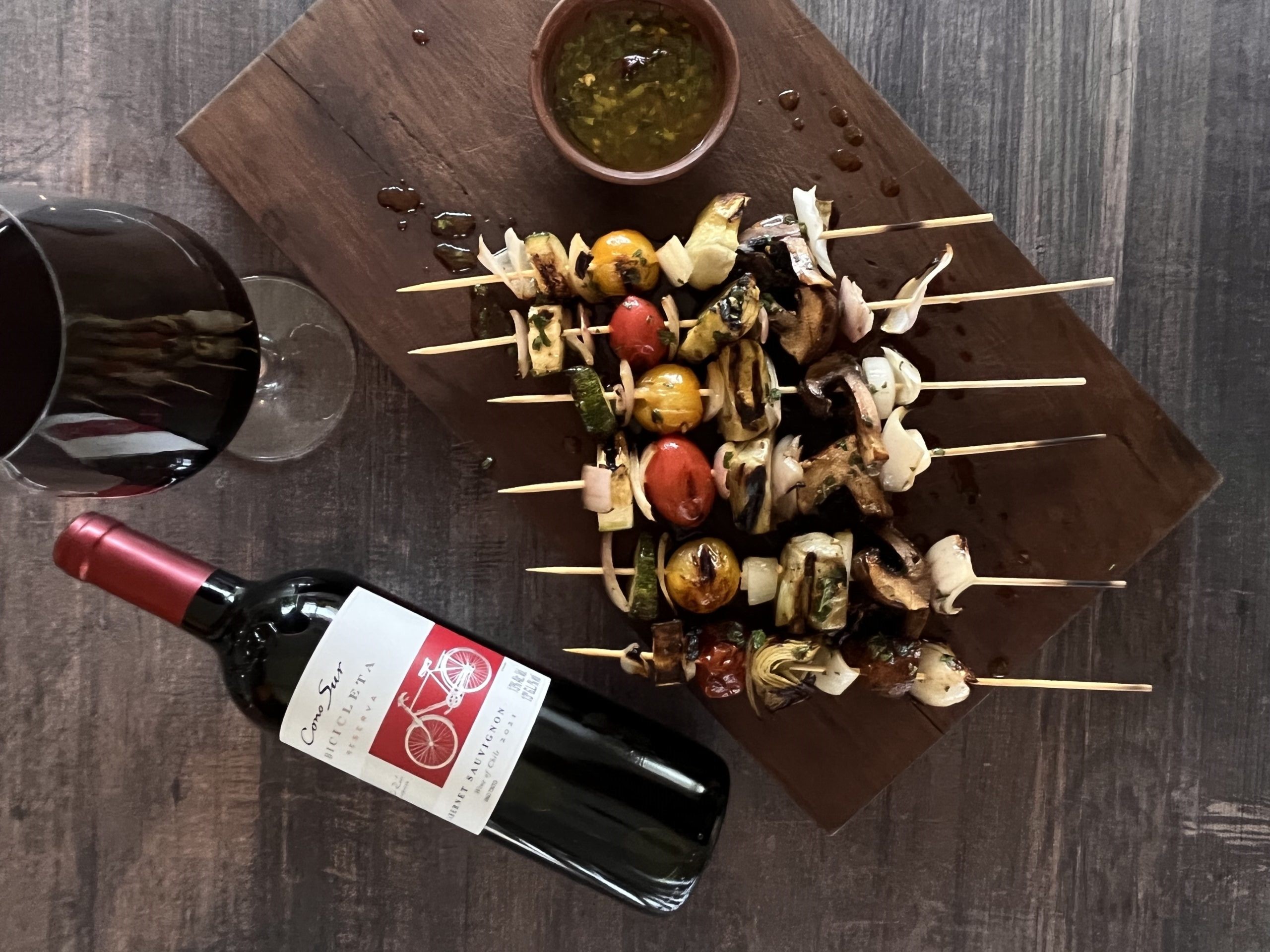 Podawaj szaszłyki w towarzystwie sosu chimichurri i lampki wina Cono Sur Bicicleta Cabernet Sauvignon.