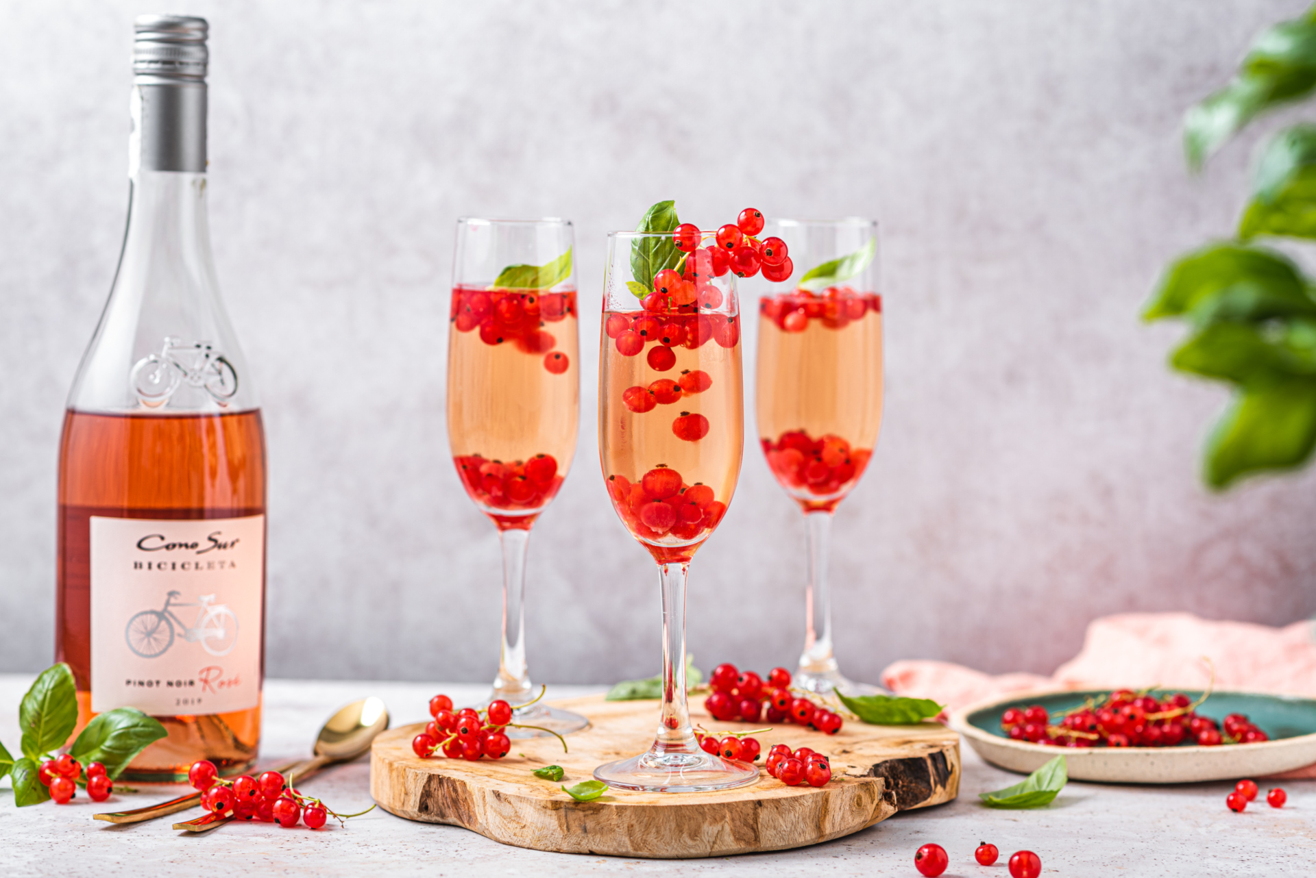 Wlewamy płyn do kieliszków, wrzucamy połowę porzeczek. Po 15 minutach wstawiamy do lodówki, a po około 30 minutach, kiedy galaretka zacznie tężeć dorzucamy jeszcze kilka porzeczek. Pozostawiamy w lodówce do pełnego stężenia – około 2 godziny. Przed podaniem dekorujemy bazylią lub miętą.